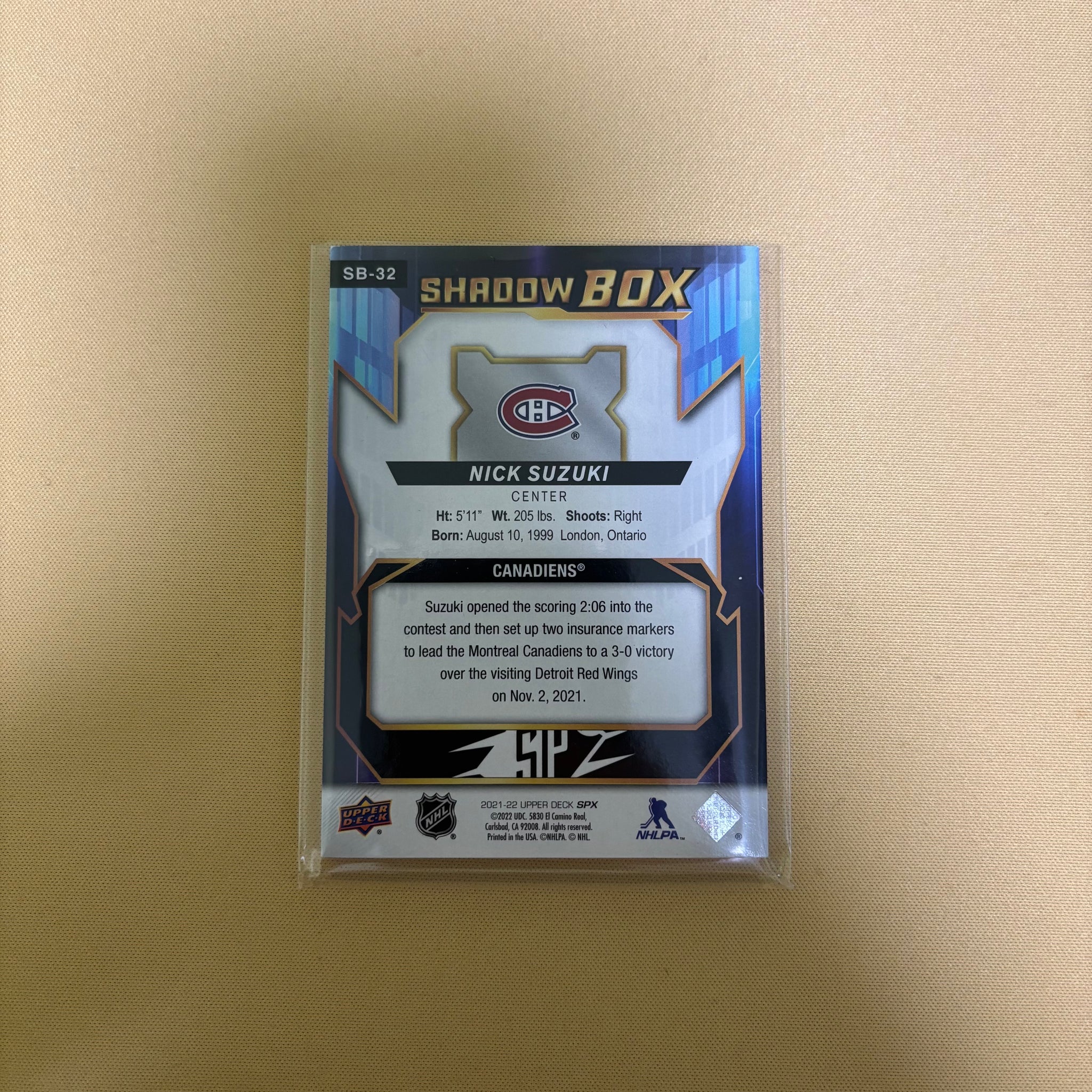 2021/22 Upper Deck SPX Nick Suzuki Shadow Box Center Montreal Canadiens SB-32 Sports Card