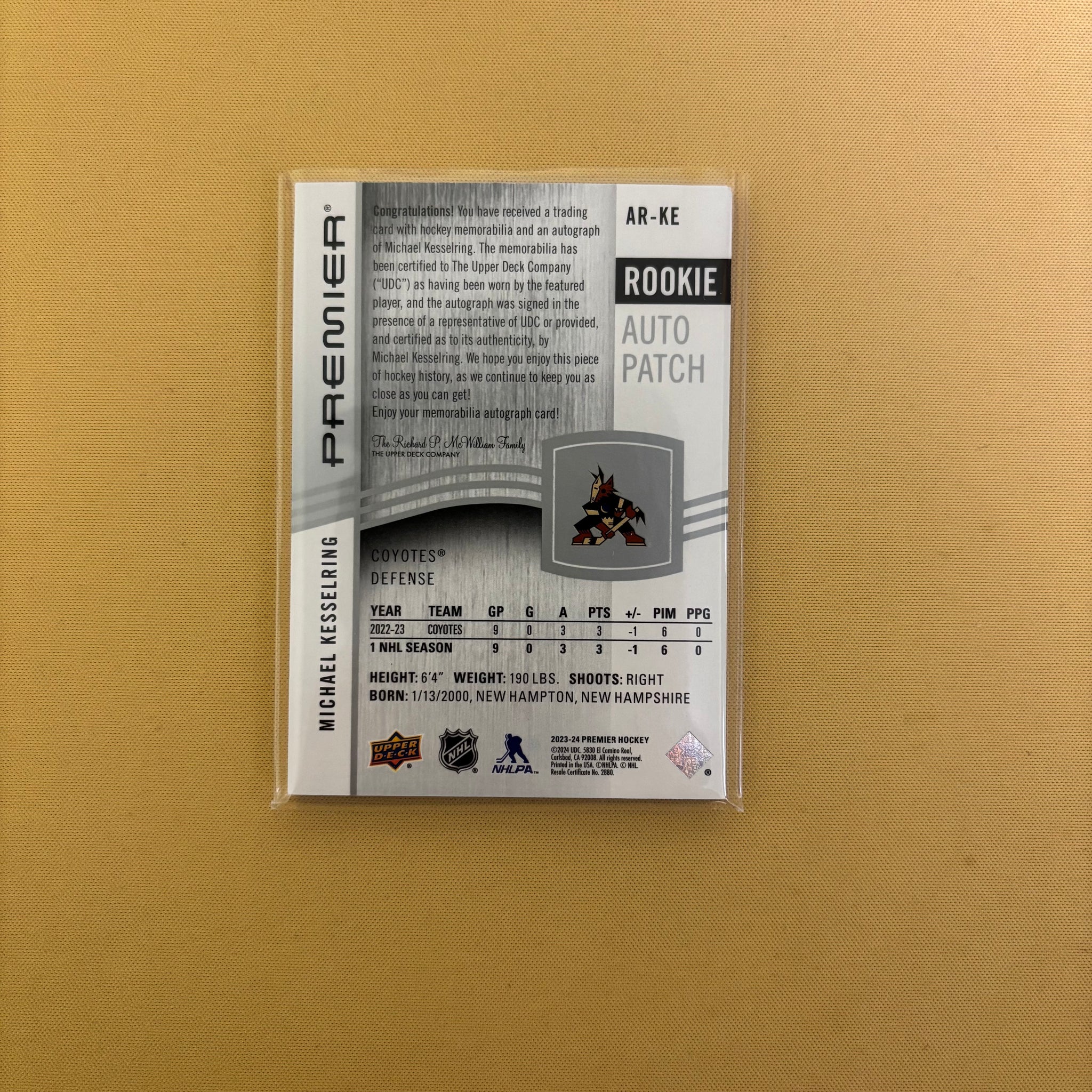 2023 UPPER DECK PREMIER MICHAEL KESSELRING ACETATE ROOKIE AUTO PATCH RC /249 Sports Card