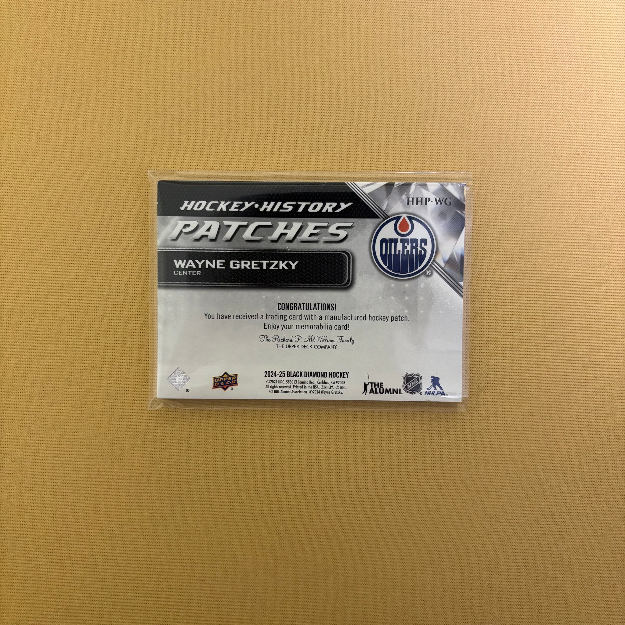 2024/25 Upper Deck Black Diamond Wayne Gretzky Hockey History Patches Edmonton Oilers HHP-WG Sports Card