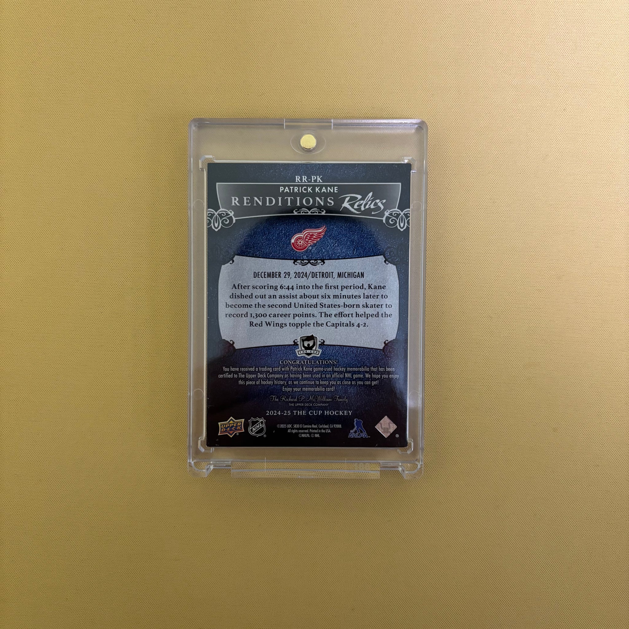 2024/25 Upper Deck The Cup Patrick Kane Rendation Relics Patch /10 Detroit Red Wings RR-PK Sports Card