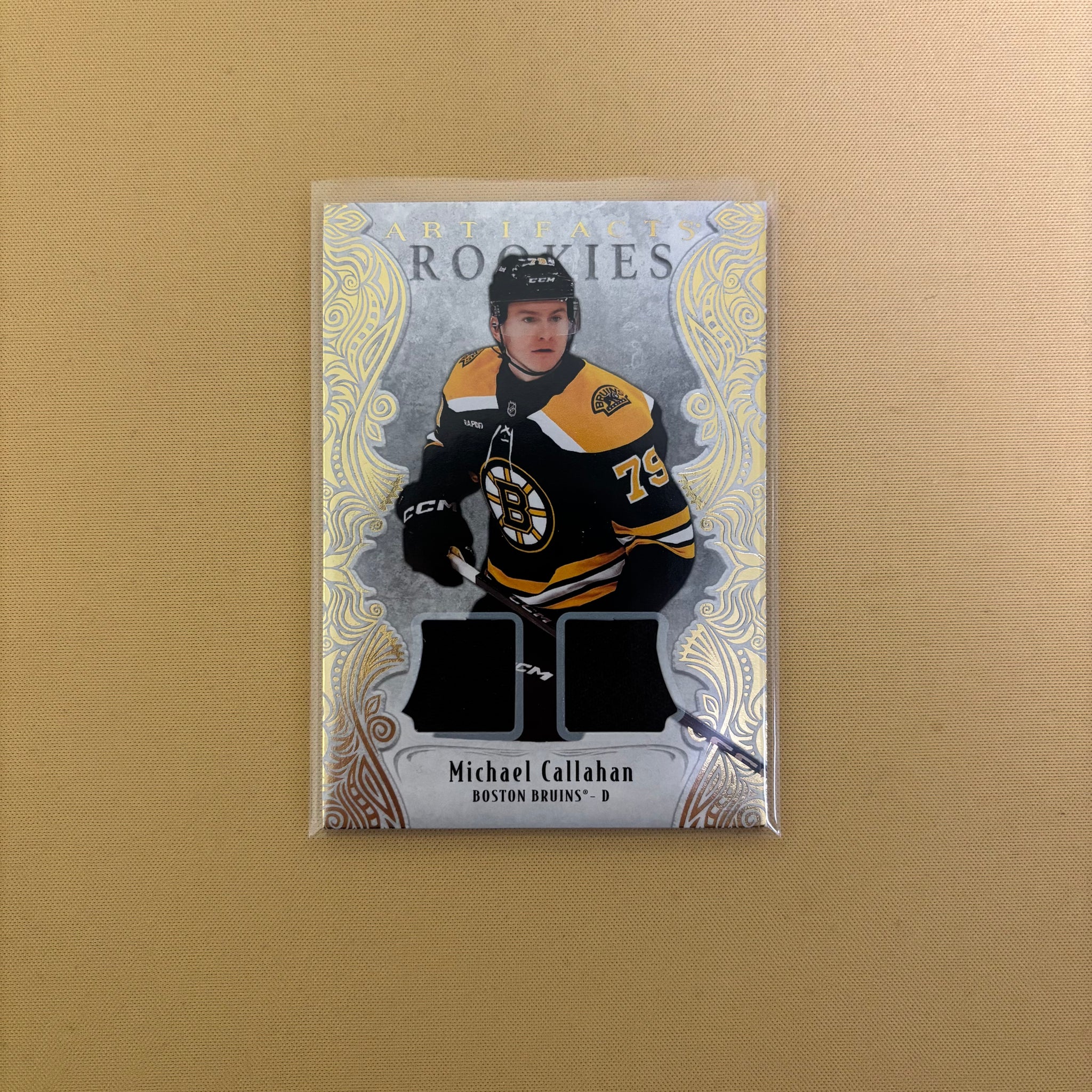 2025-26 Artifacts Bruins Michael Callahan Rookie Gold Material Dual Jersey /499 Sports Card